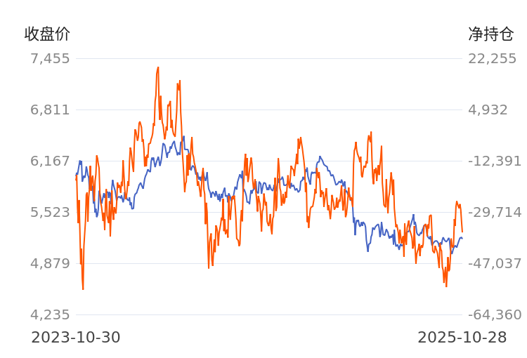 东证期货净持仓与价格变化对比图