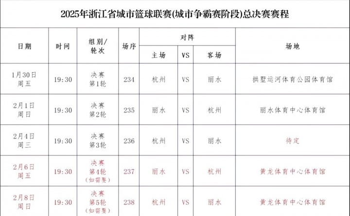 丽水队将与杭州队争夺2025年浙江省城市篮球联赛(城市争霸赛阶段)的冠军。